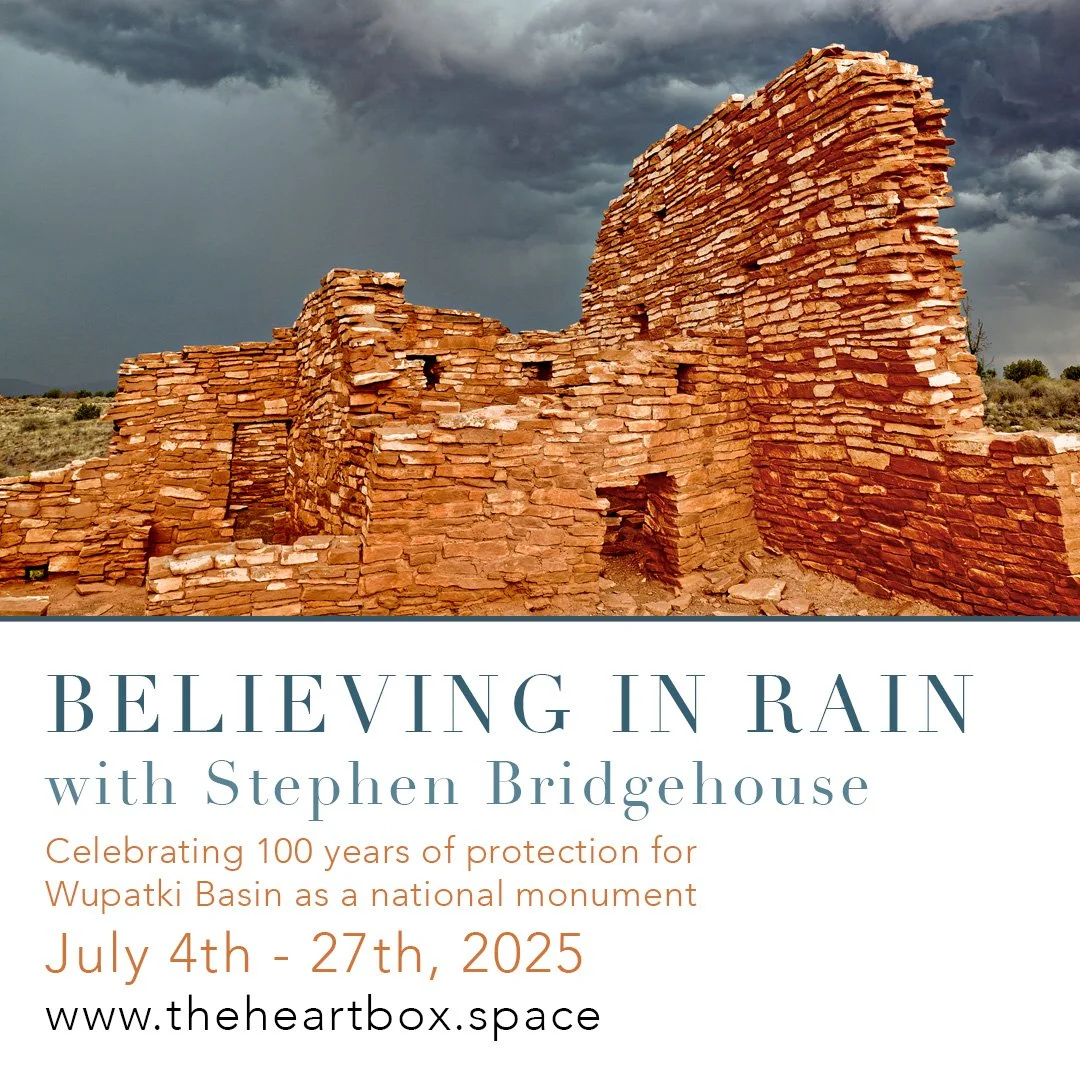 Believing in Rain is a striking photographic exhibition by Stephen Bridgehouse, born from his artist residency with Wupatki National Monument and shared with the public through The HeArt Box during the month of July, a time of waiting and calling in the rain in Northern Arizona.